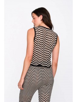 Chaleco 24Colours, 41360, en punto zig zag en beige y negro...