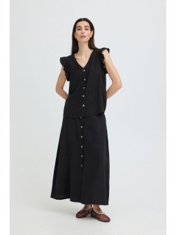 Falda midi Byoung, 20816610 BYFALAKKA BUTTON SKIRT, con goma a cintura y cierre con botones en la parte central delantera.