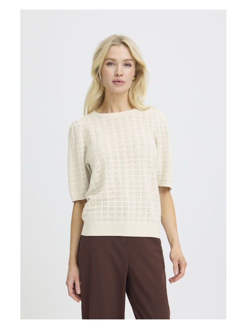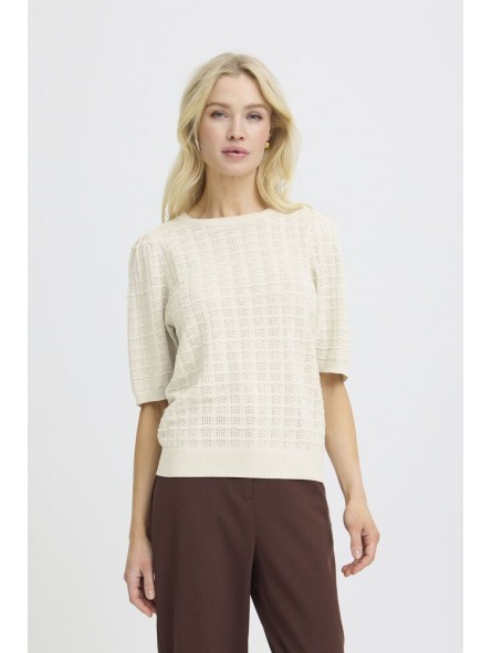 Jersey Byoung, 20818686 BYMULINA JUMPER, con cuello redondo y manga corta con rib en el cuello, mangas y bajo de la prenda. Troquelado en el tejido.