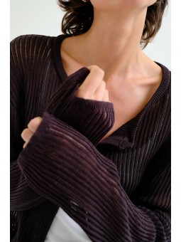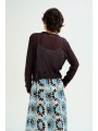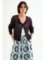 Cárdigan Compañía Fantástica, 62C/10461 CARDIGAN, en tejido de punto fino con relieve en color negro. Cuello redondo y manga larga con cierre frontal con dos botones en color negro. Hombro ligeramente caído. Detalle de acabado en rib en cuello y frontal. La modelo mide 177cm y lleva la talla S.