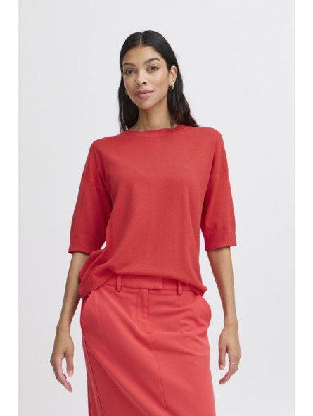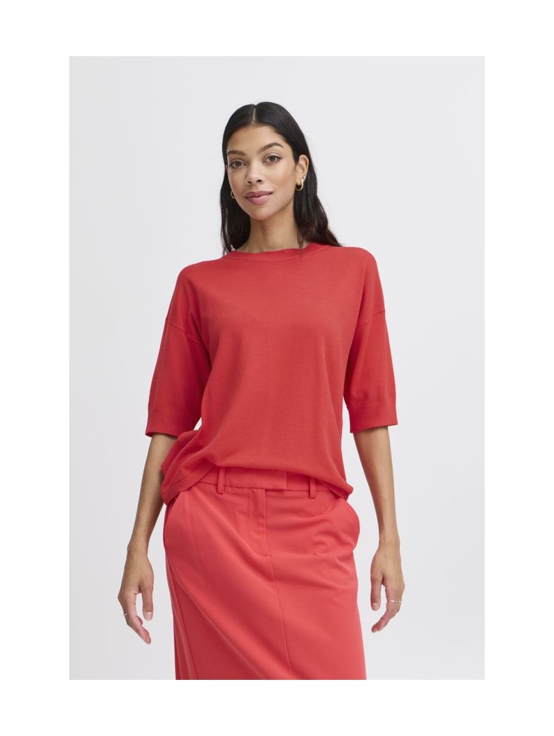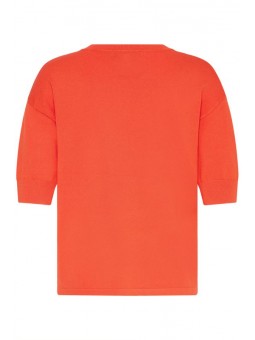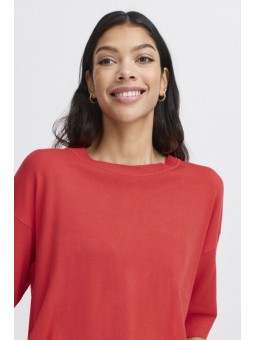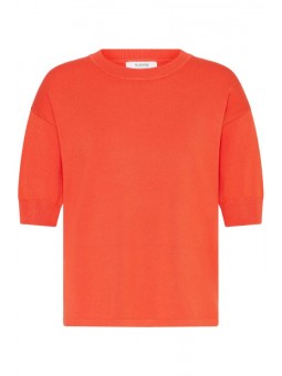 Jersey Byoung, 20814397 BYMMORLA T-SHIRT, en color coral con cuello redondo, manga corta por encima de los hombros con hombros bajos. Una prenda con un estilo versátil ideal para cualquier ocasión.