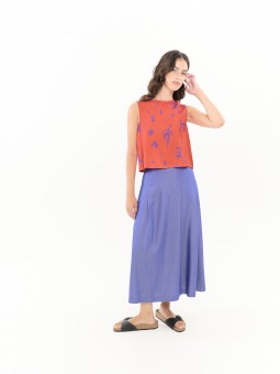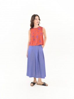 Top Béhulah, MIMOSA, en fondo coral con cuello redondo sin...