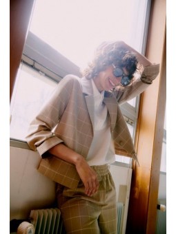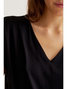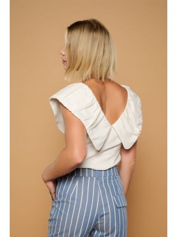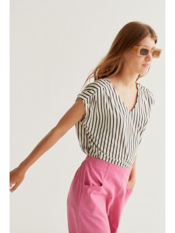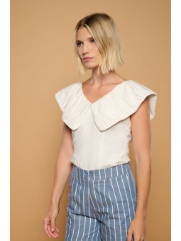 Blusa Minueto, 261054 WHITE VIROT TOP, con escote pico y manga...